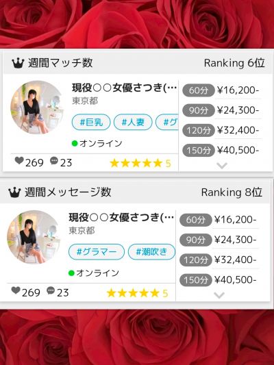 現役AV女優です❤ 正真正銘の本物ですのでご安心下さい😄 プロフィールを読んで頂いて ありがとうございます😊💕 写真は、光で粗は飛んでいますが、 修正&加工などは加えていません✨ 🔥写真詐欺撲滅委員会🔥 ここでお会いした方にも褒めて頂けて、 とても良い評価を頂きました🩷 ありがとうございます😊💕 高身長なので、手足は長いです🎵 手が綺麗なのでエロいとよく言われます😘 美容系のメンテナンスもしておりますので 年齢よりは若く見られます🥰 先日、20代後半に見られました😆💕 言葉責め、イメージプレイ、AV設定… 大の得意分野です💕 多様なお店の経験あり✨ ソープ・マットの講習員をしていた事もあります🎵 エステの資格も持ってますので、 マッサージも得意ですよ🥰 あと、使い道が今の所、見付からないのですが 調理師免許も持ってますので、 【家でご飯作って欲しい🎵】などにも 対応可能です😄✨ 黒髪ストレートロング&肌は綺麗です✨ 全身フワフワのマシュマロ肌✨ 見た目はSっぽいと言われますが 話すと優しいねと言われます💕 大卒なので、頭は悪くありませんし、 雑学、知識豊富です😘 もちろんお酒も飲めます🍺✨大好きです🥰 朝まで付き合える肝臓のキャパ持ってます😆✨ 飲める🍺喋れる✨○○○💕 とにかく○○○○大好き😍💕 質問✨疑問✨要望✨希望✨願望✨ 誰にも話せない相談etc… 何でも構いませんのでお気軽にどうぞ🥰✨ 出張範囲は設定上の表記が、 関東圏とさせて頂いておりますが、 旅費や宿泊費をご負担頂ければ、 日本全国どこまででも行きます😊👍✨ 沖縄や北海道は大歓迎です😍✨ 朝までのお泊りも可能ですので、 ご相談下さい💕 (12時間貸し切りなども可能です✨) その際のお手当はご相談で😄✨ その他、 ここのオプション設定に無い様なものも ご相談頂ければ可能なものもありますので、 まずはメッセージから声かけて欲しいです🎵 ⭐駅から徒歩5分以上離れてる場合は タクシー代を頂いております⭐ ⭐クレジットカード決済の場合は 手数料分を頂いております⭐ ⭐片道1時間以上かかる場所は 120分コース以上でお願いします⭐ (例:片道3時間の移動時間の場合 360分以上のオーダーでお願いします⭐) 頂いたお時間は大切にします🩷 よろしくお願いします😘💋