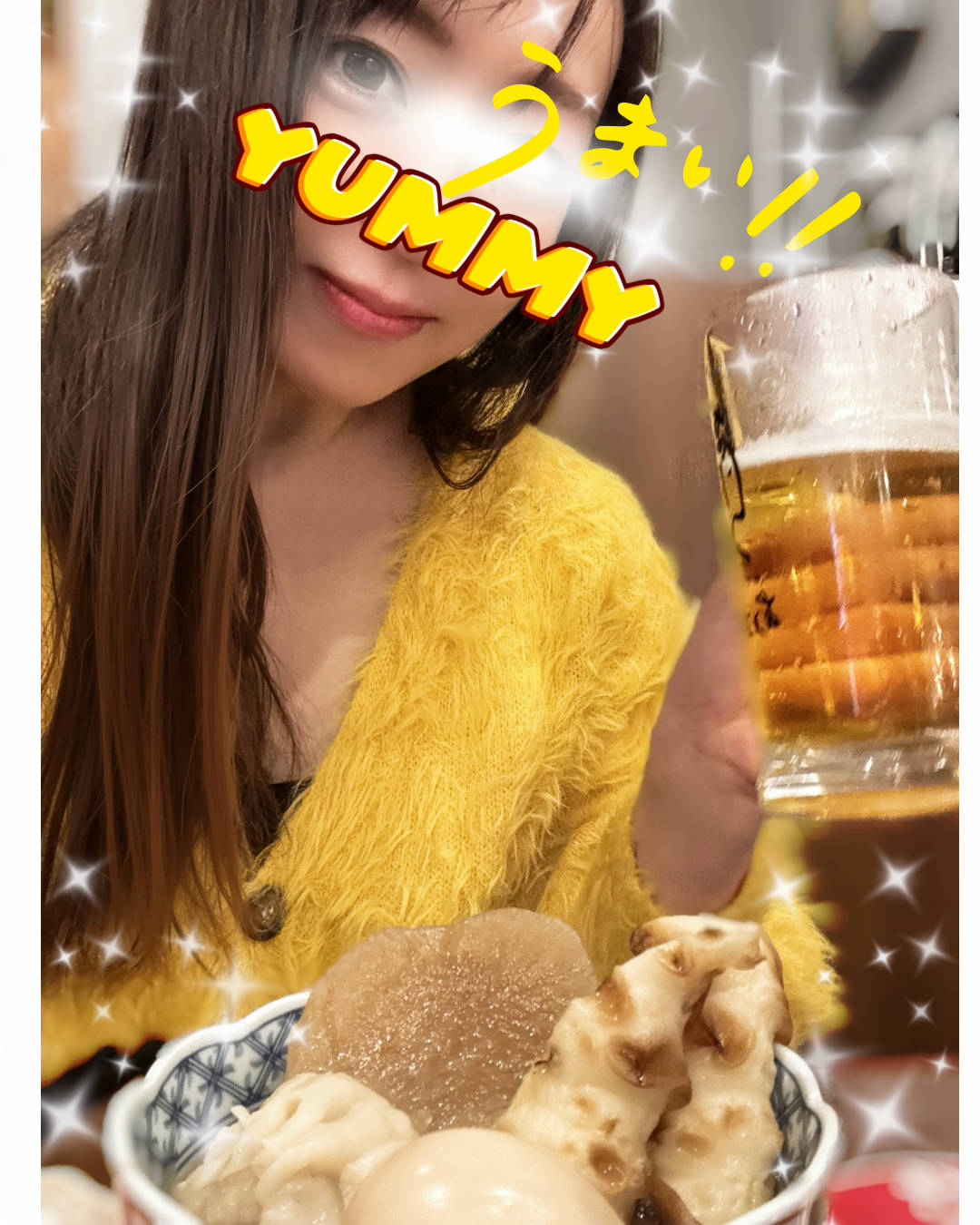 今日は暖かな1日でしたね😉 春が来た🌸なんて 勘違いしそうでした〜✨ 来週は寒波がくるそうですね😭 春はもう少し先ですねぇ 今日は1人ゆっくりな夜なんです笑 スーパーで鯵のなめろうを買ってきて beerプシュっとやっております😉✨ 家族や仲間とワイワイやるのも好きですが ひとりしっぽり過ごすのも大好きです〜 写真は先日 デートコースでおでん屋さんに 連れて行っていただいた時のものです😍 もぅ〜お出汁しみしみのおでん 最高でした〜 楽しかったなぁ〜🥰 この服いつも着てる🤣 いつも同じのでとぅいまてぇーーん🙏 黄色は金運UPということで😘✨✨